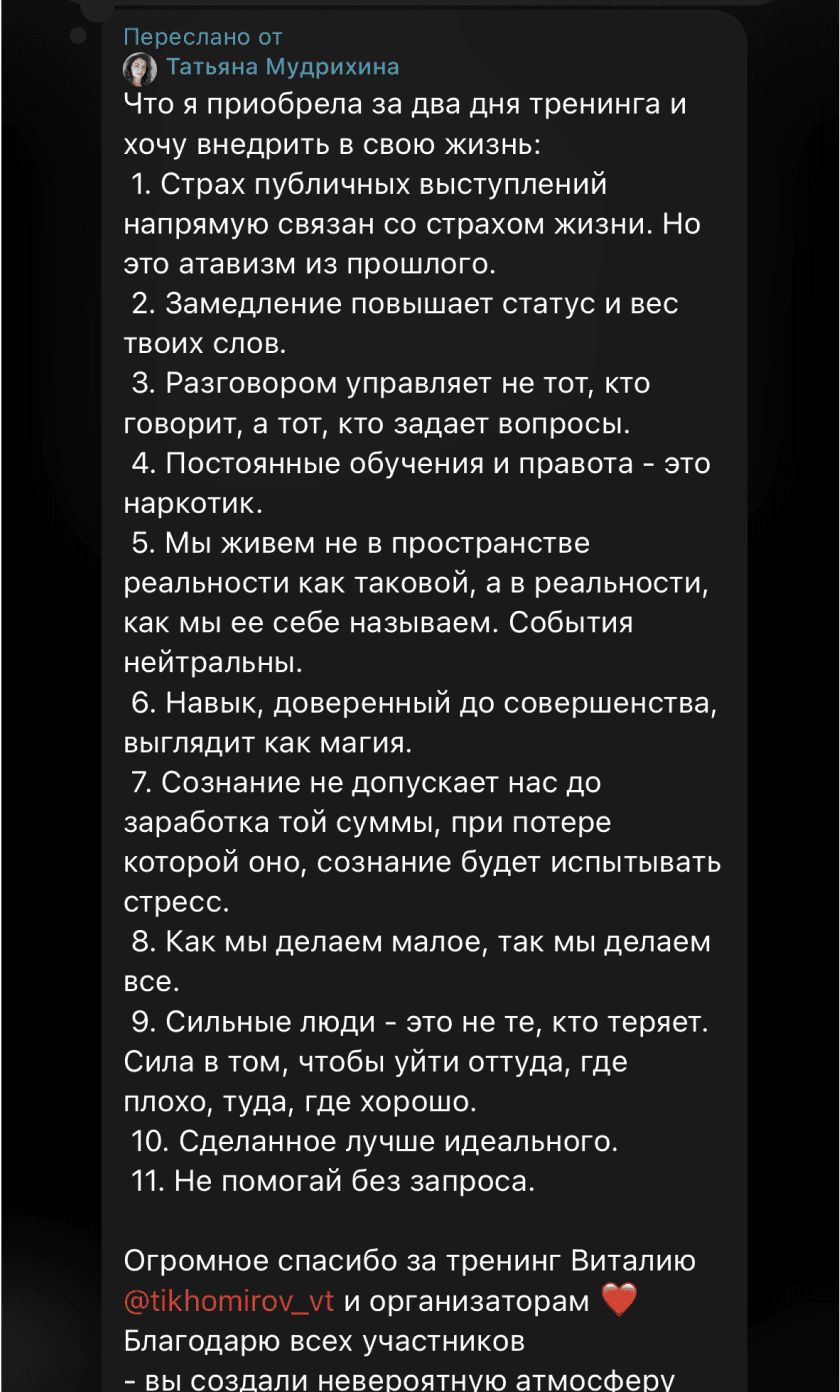 • Провел тренинги в 22 городах России, обучив более 1000 человек офлайн.